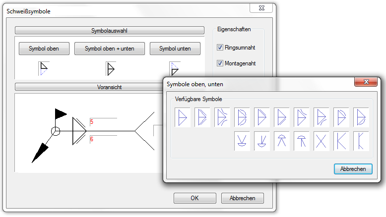 GDESIGN Mechanical verfügt über Zeichnungshilfen wie Schweißzeichen, Schweißsymbole, Maßstab/Detailmaßstab und intelligente Layerfunktionen.
